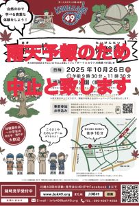 - 【雨天予報のため中止】2025年10月26日(日)午前「秋のボーイスカウト体験隊」(鷺沼公園)<10月24日 追記>10月26日(日)午前のボーイスカウト体験隊は雨予報のため、今回の開催は中止と…