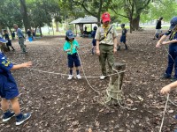 ボーイスカウトの基本技能であるロープワークを行いました。